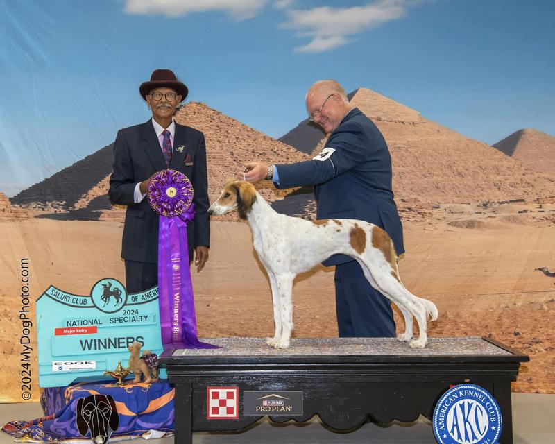 * Saluki Club of America National Specialty - Best of Winners (5 point major), Best Bred By Exhibitor, Best Puppy under breeder judge Dr Robert Place - June 2024